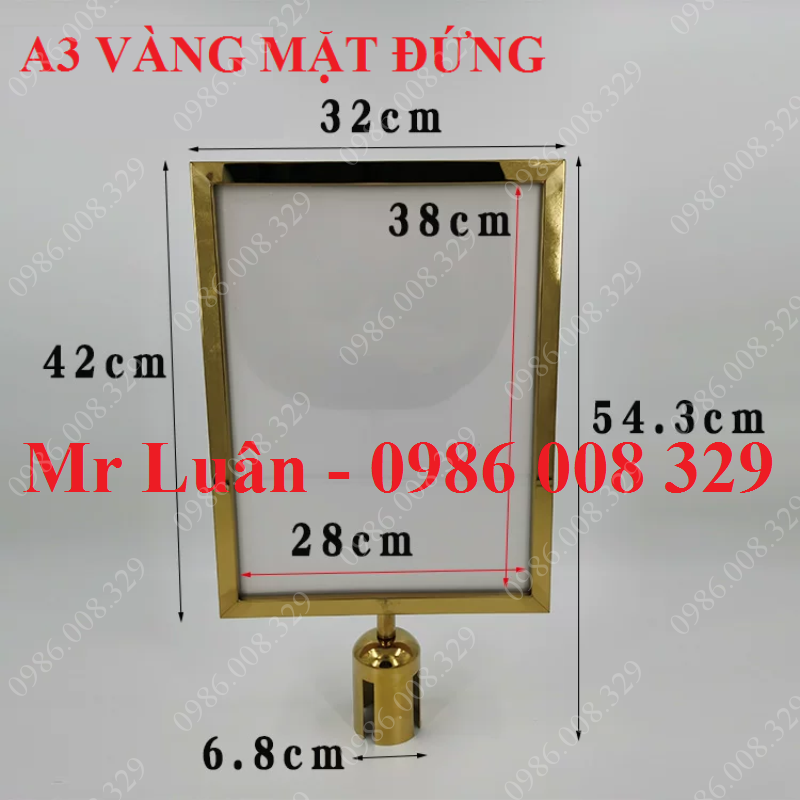 Kích thước khổ A3 hiển thị tối đa: Với thiết kế mặt đứng (Portrait) khổ A3, bảng cung cấp không gian rộng rãi để trình bày các văn bản dài, danh sách đại biểu, nội quy sự kiện hoặc các sơ đồ chỉ dẫn tầng. Kích thước lớn giúp khách hàng dễ dàng đọc được thông tin từ khoảng cách xa.