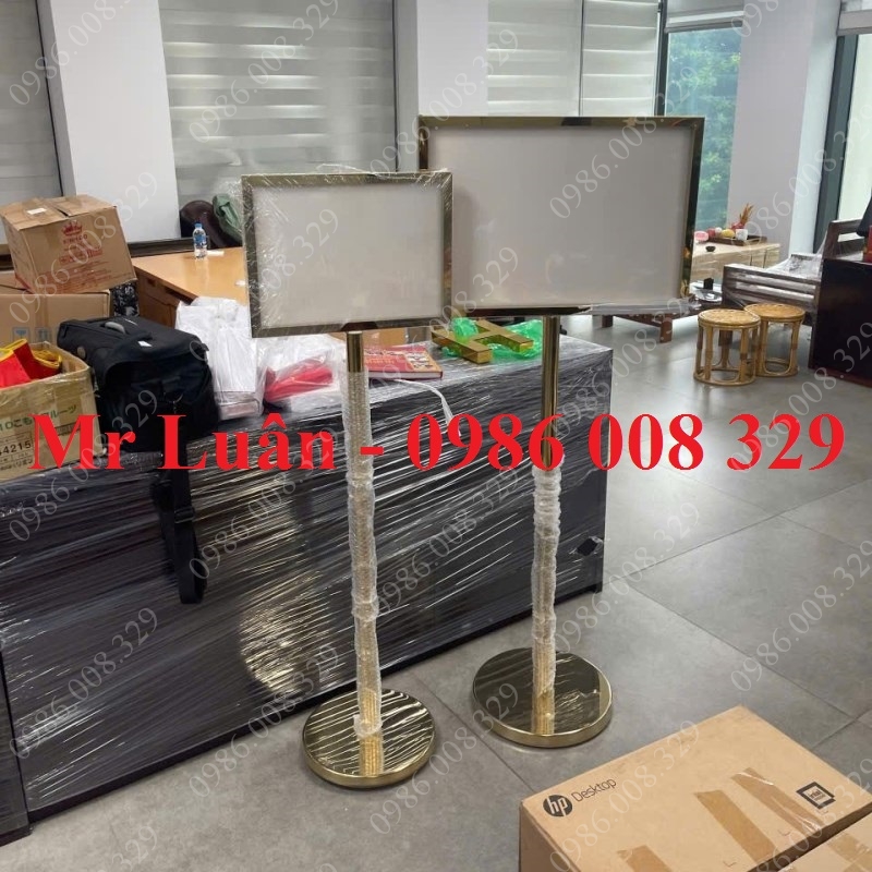 Trong các sự kiện quy mô lớn hay tại sảnh khách sạn 5 sao, việc điều hướng khách hàng một cách tinh tế và chuyên nghiệp là yếu tố cực kỳ quan trọng. Bảng chỉ dẫn inox vàng 2 mặt A2 ngang không chỉ đóng vai trò là "người chỉ đường" tận tụy mà còn là biểu tượng của sự sang trọng, góp phần nâng tầm đẳng cấp cho không gian trưng bày. Với kích thước khổ lớn và lớp mạ vàng gương sắc nét, sản phẩm này luôn thu hút ánh nhìn từ mọi phía.