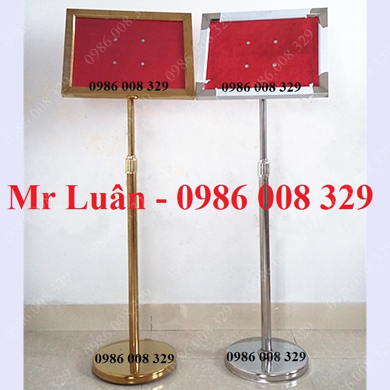 Cấu tạo: Khung bảng đút nội dung nhanh, thân trụ có khóa chốt tăng giảm độ cao và đế chống lật.