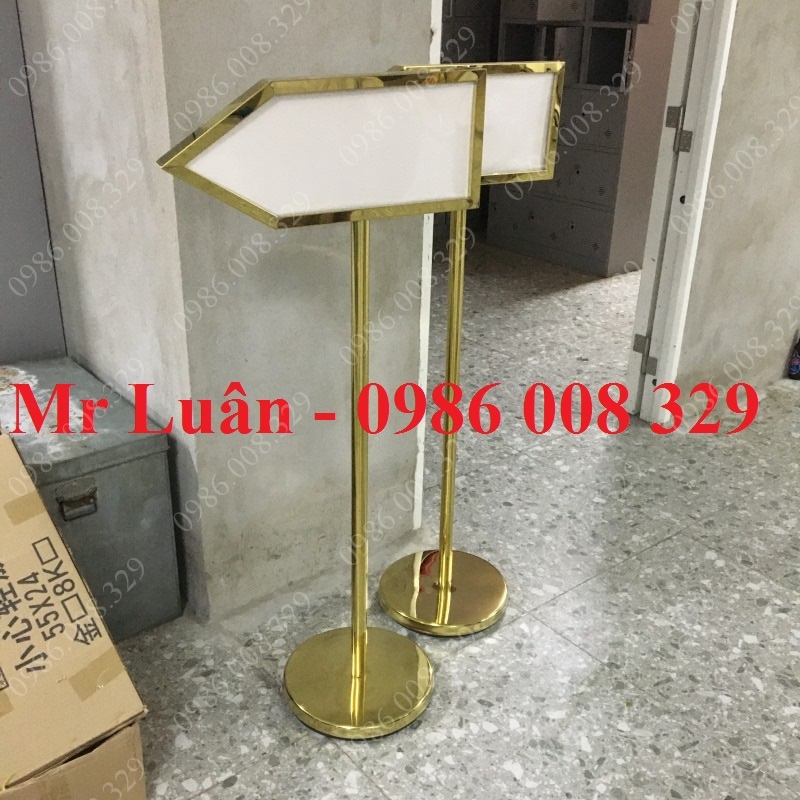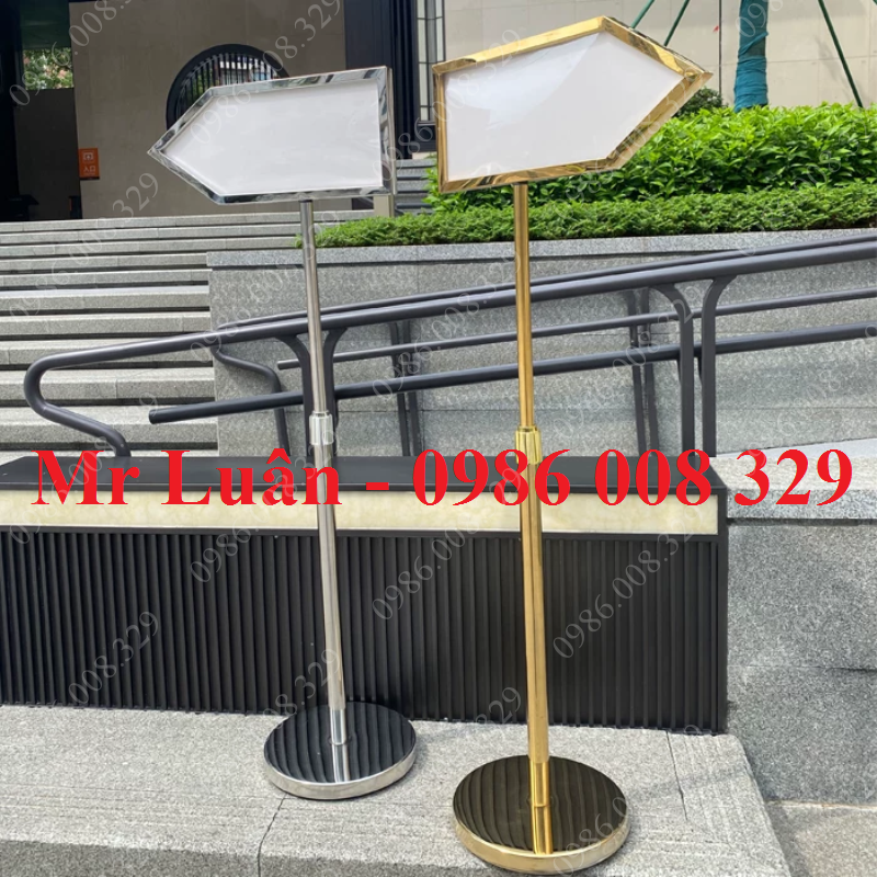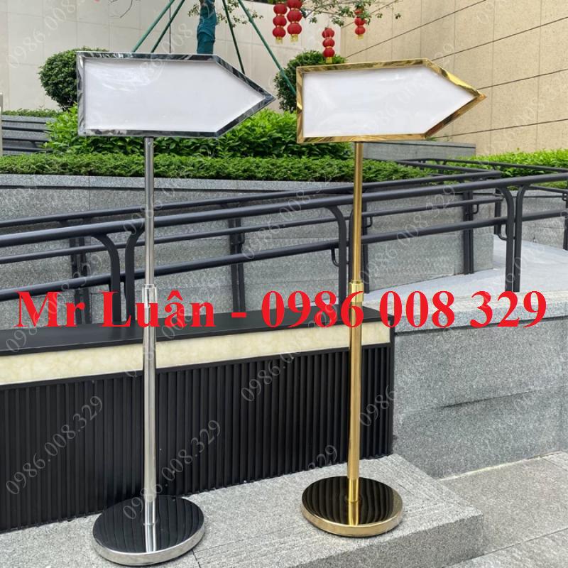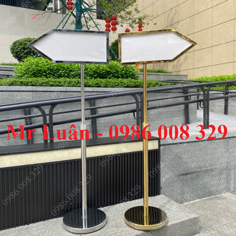 - Bảng thông báo chỉ dẫn thường được dùng tại sảnh nhà hàng khách sạn, dùng chỉ dẫn lối đi tại hành lang chân cầu thang hầm để xe lối ra vào cho tòa nhà siêu thị trung tâm thương mại bệnh viện trường học, hay dùng chỉ dẫn lối đi xếp hàng cho tổ chức sự kiện , dùng giới thiệu sản phẩm khu trưng bày khu bảo tàng...