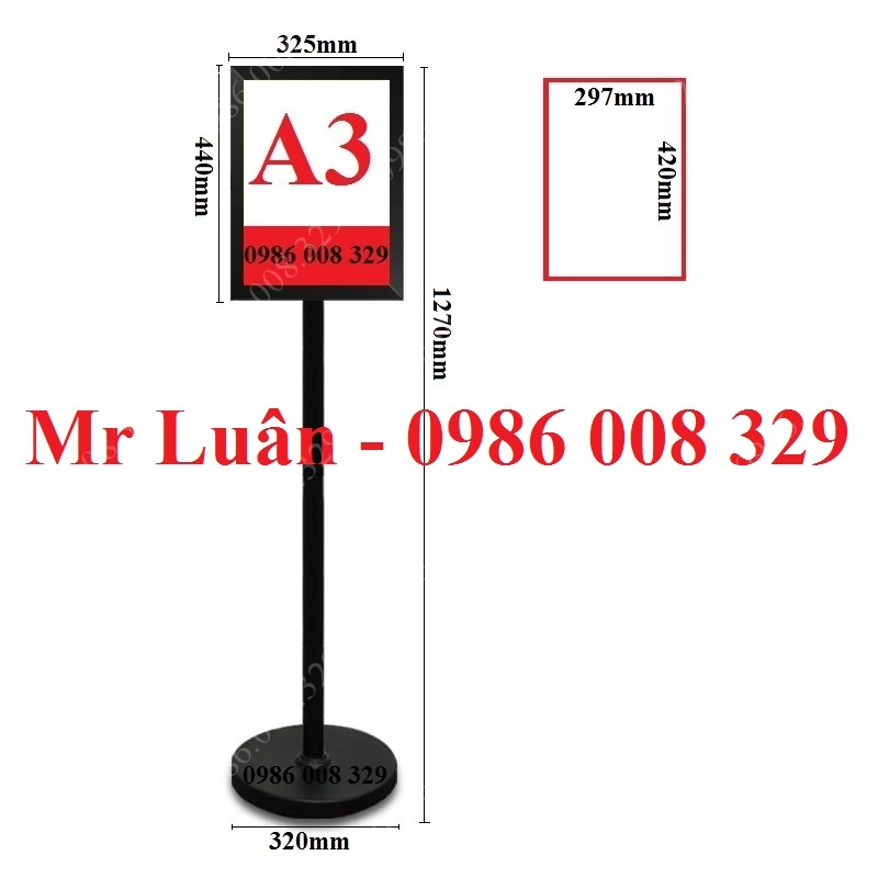 Bảng chỉ dẫn đen 2 mặt A3 đứng