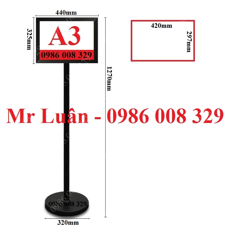 - Mặt bảng hình chữ nhật đặt thẳng đứng hiển thị 2 mặt khổ A3