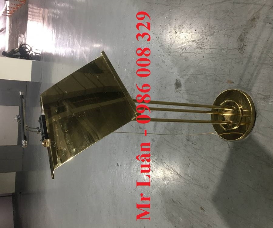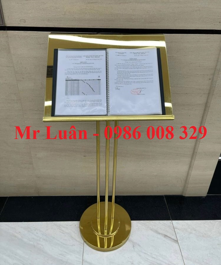 Chất liệu inox mạ vàng gương thượng hạng: Toàn bộ khung bảng và thân trụ được làm từ inox dày dặn, xử lý bề mặt mạ vàng bóng gương (Gold Mirror). Sắc vàng kim không chỉ mang lại vẻ sang trọng hoàng gia mà còn có độ bền cực cao, chống hoen gỉ và oxy hóa.