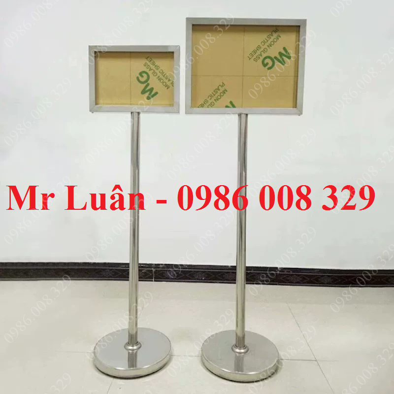 - Mặt sau của bảng có chốt giữ liên kết phần mặt nội dung bảng và phần khung inox bao quanh mặt. Thay đổi nội dung bằng cách mở chốt ra bỏ nội dung vào và cài chốt lại khi sử dụng.