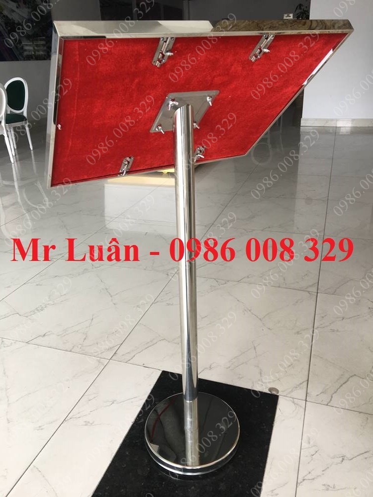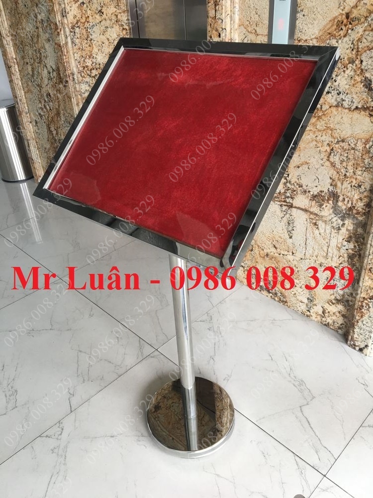 Trong các không gian rộng lớn như đại sảnh khách sạn, trung tâm triển lãm hay các hội trường tiệc cưới, việc sử dụng các biển chỉ dẫn nhỏ thường khiến khách hàng khó quan sát từ xa. Bảng thông báo inox mặt nghiêng size A2 chính là giải pháp hoàn hảo với diện tích hiển thị ưu việt, giúp thông tin được truyền tải một cách rõ ràng và đẳng cấp nhất.