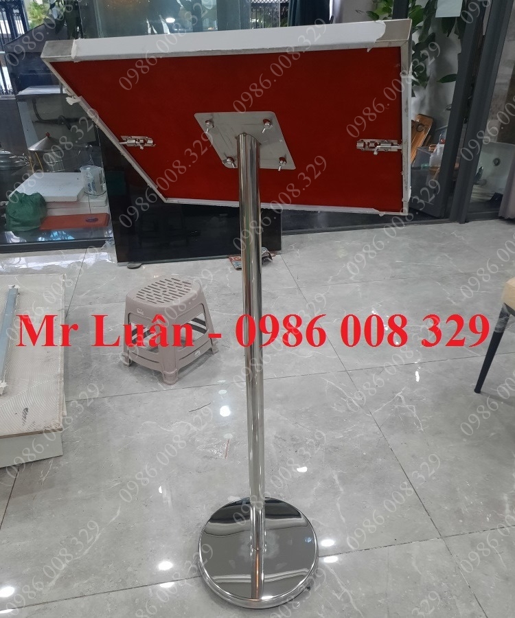 Kết cấu chân trụ đứng vững chãi: Thân trụ inox dày dặn kết hợp với chân đế đúc nặng giúp bảng đứng vững vàng tại những nơi có lưu lượng người qua lại đông đúc như cửa thang máy, hành lang sảnh chính mà không lo bị rung lắc hay đổ ngã.