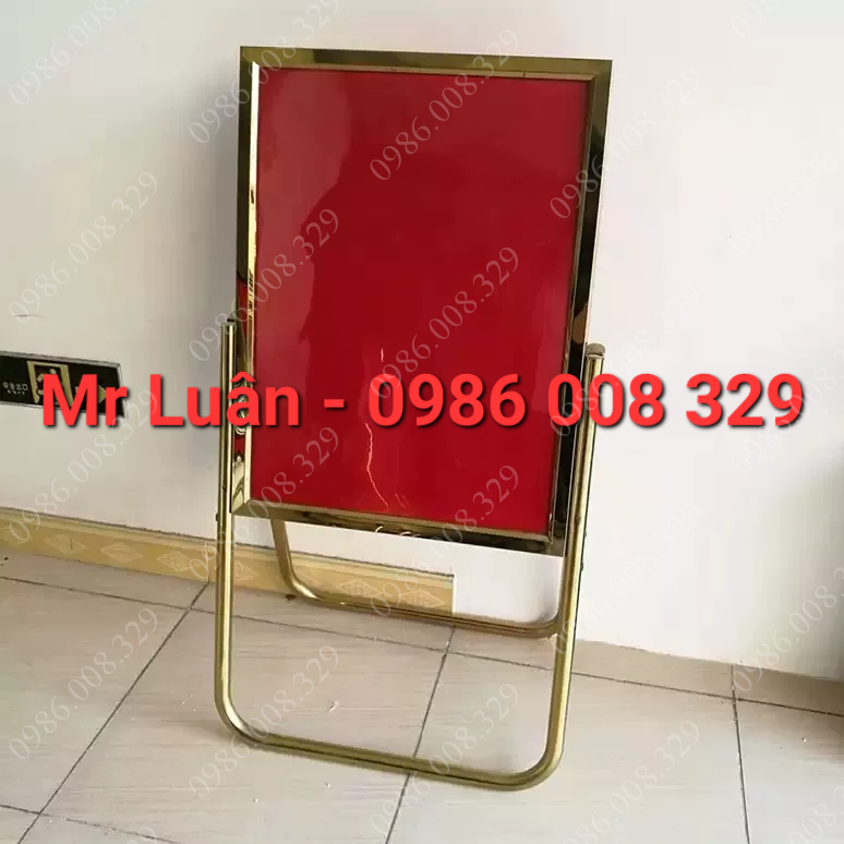 Kết cấu: Khung inox dày dặn, kết nối bằng bản lề chắc chắn, có dây xích hãm độ mở giúp bảng đứng vững.