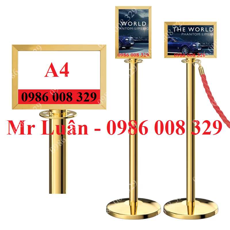 Bảng thông báo inox vàng cho trụ barie dây nhung