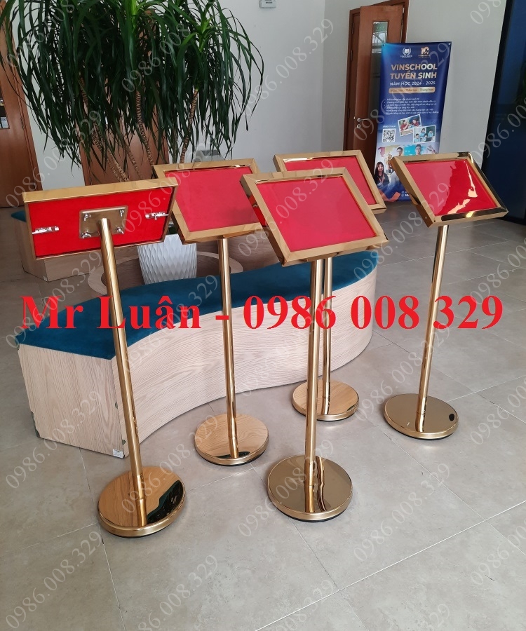 Trong thiết kế nội thất khách sạn và nhà hàng, những chi tiết nhỏ màu vàng gold luôn mang lại cảm giác xa hoa và chuyên nghiệp. Bảng thông báo inox vàng A4 mặt nghiêng là sự kết hợp hoàn hảo giữa công năng chỉ dẫn và tính thẩm mỹ cao cấp, giúp không gian đón tiếp của bạn trở nên ấn tượng hơn trong mắt khách hàng.