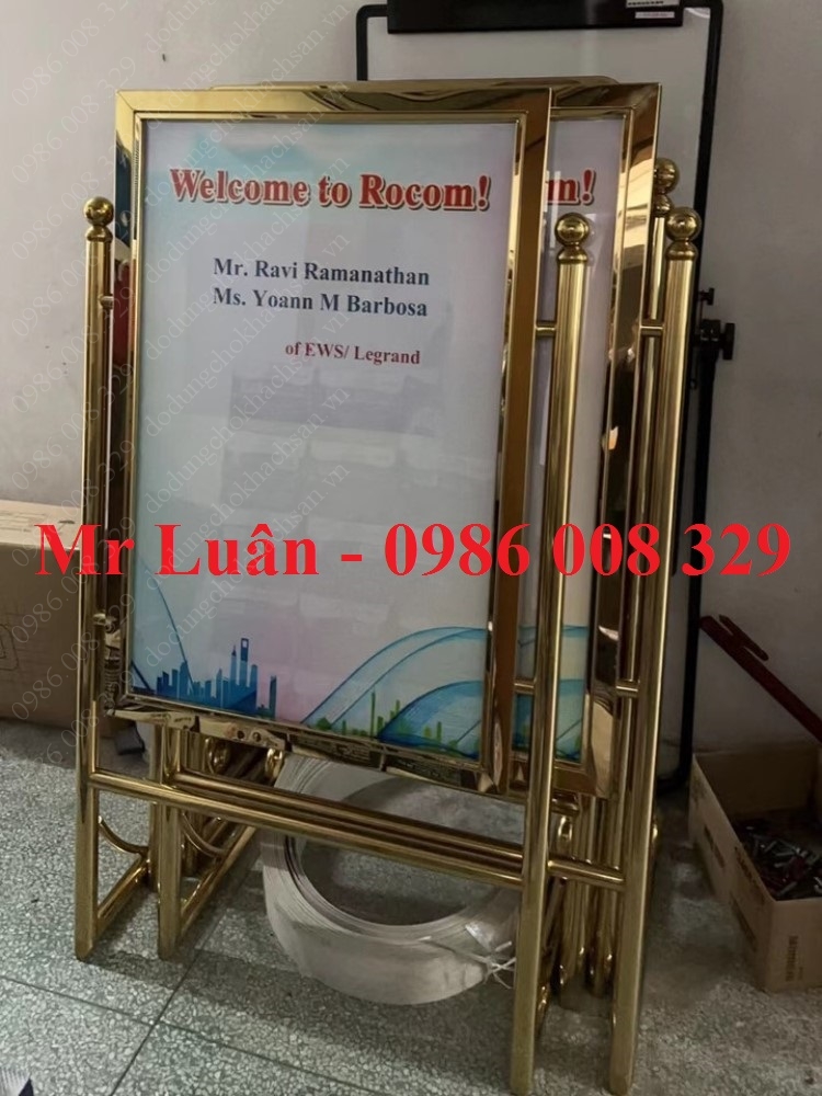 Trong thiết kế trang thiết bị khách sạn hiện đại, các dòng sản phẩm có hình khối tối giản và thanh thoát luôn chiếm được cảm tình của các kiến trúc sư. Bảng thông báo khách sạn B4 chữ L với khung inox mạ vàng gương là minh chứng cho sự kết hợp hoàn mỹ giữa nghệ thuật tạo hình và công năng sử dụng, mang lại vẻ đẹp đẳng cấp cho không gian đón khách.
