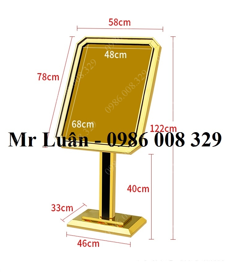 Chân đế: Thiết kế dạng đế bằng hoặc đế trang trí có độ nặng tối ưu, đảm bảo không bị đổ ngã khi khách hàng di chuyển đông đúc xung quanh.