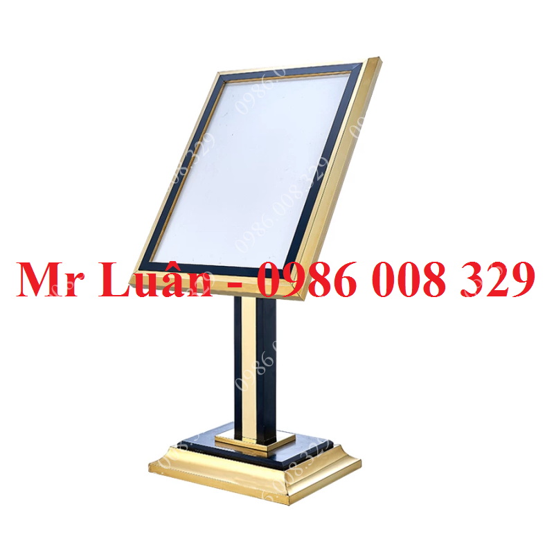 - Mặt sau của bảng có chốt giữ liên kết phần mặt nội dung bảng và phần khung inox bao quanh mặt. Thay đổi nội dung bằng cách mở chốt ra bỏ nội dung vào và cài chốt lại khi sử dụng.