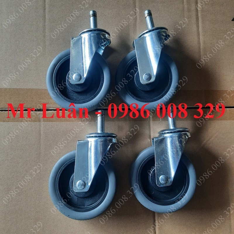 Bộ bánh xe thay thế cho xe đẩy phục vụ trong nhà hàng hay bộ 4 bánh xe mua thêm cho xe đẩy nhựa 3 tầng là dòng sản phẩm được sử dụng với mục đích thay thế bánh xe cho các dòng xe đẩy phục vụ nhà hàng, đặc biệt là các dòng xe khung nhựa 3 tầng dùng thu gom bát đĩa hay phục vụ thức ăn. Với chất liệu khung thép phần bánh cao su đặc chắc chắn, bánh xe thay thế này đáp ứng các yêu cầu về sử dụng và trọng tải của các dòng xe Phục vụ.