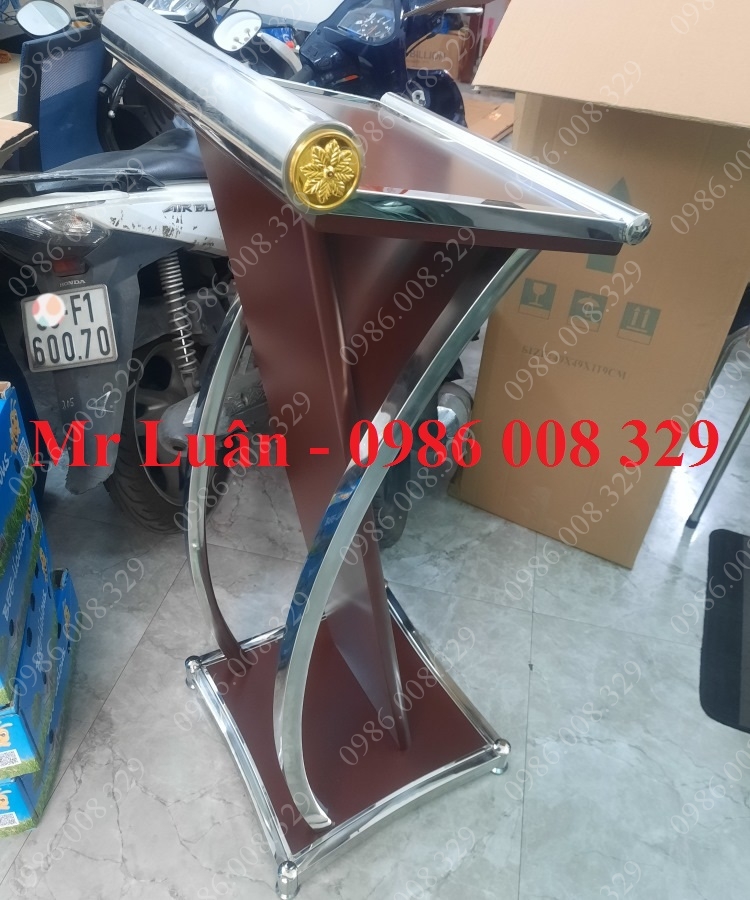 - Bục phát biểu được làm bằng chất liệu inox và gỗ công nghiệp , thiết kế tinh tế đẹp mắt. Sản phẩm có chất liệu bằng gỗ công nghiệp được phủ bóng PU hạn chế thấm nước và ẩm mốc.