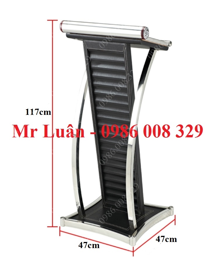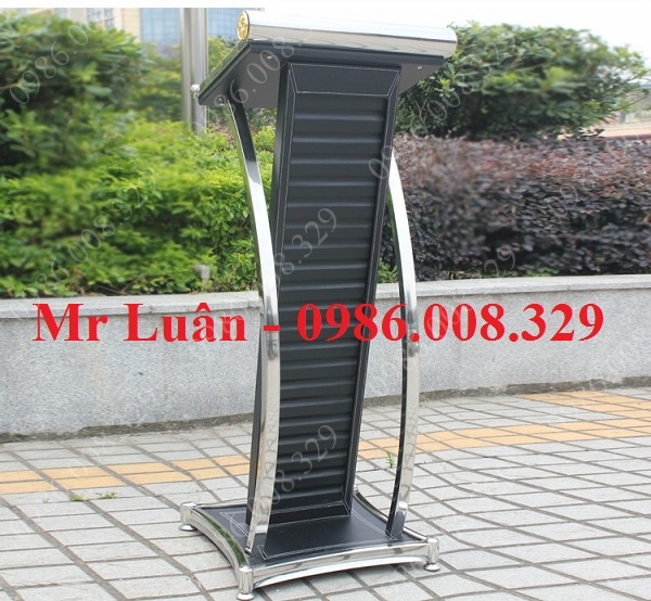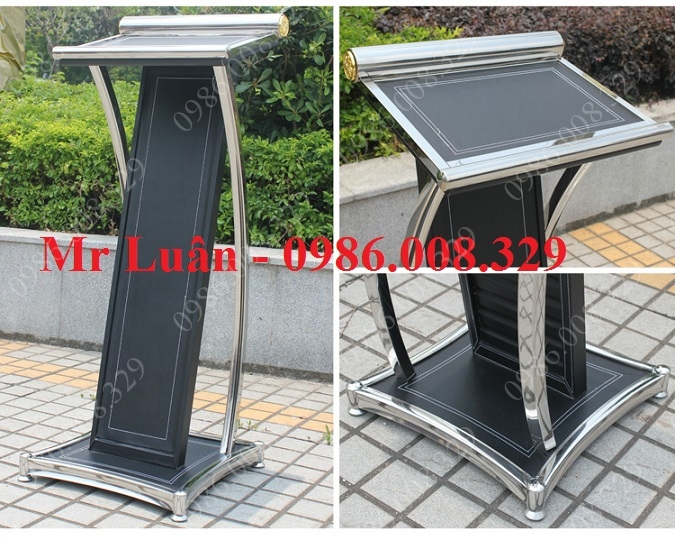 Bục phát biểu sự kiện inox thân gỗ bọc da đen