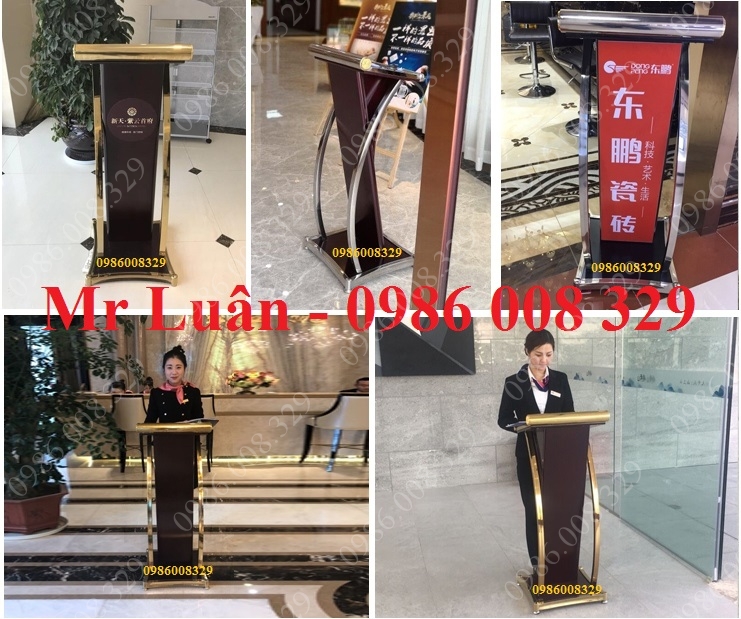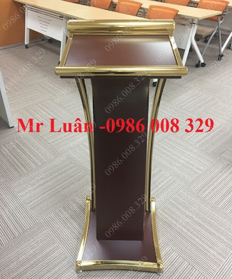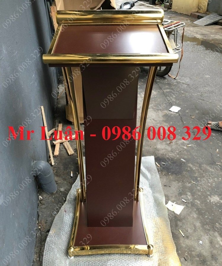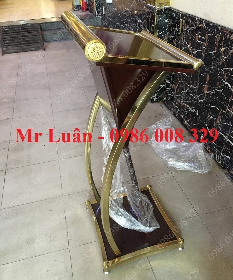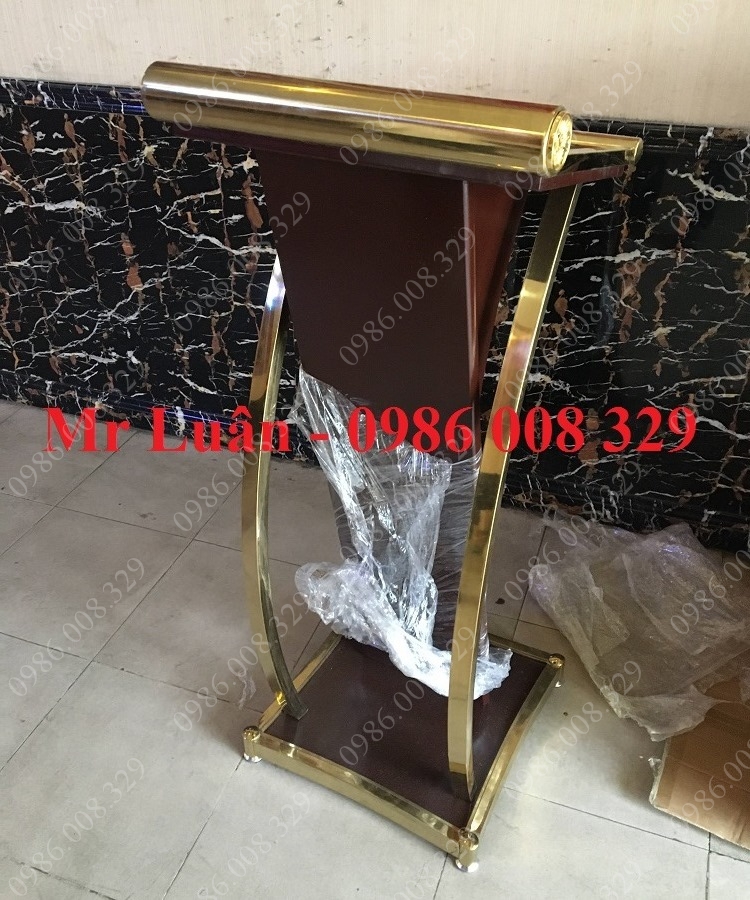 Bục phát biểu sự kiện inox vàng gỗ đỏ