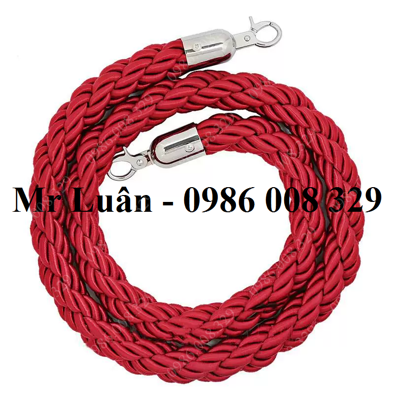 - Dây nhung, dây thừng bện cho cột chắn với phi dây 32mm,chiều dài dây 1500mm và nhiều màu sắc khác nhau như : đỏ, vàng, đen, xanh dương, xanh lá....