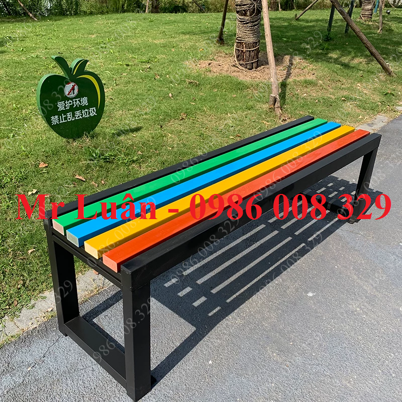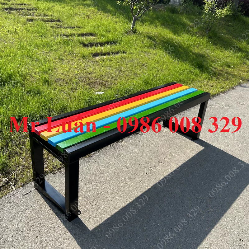 Ghế công viên không tựa nan gỗ nhựa nhiều màu