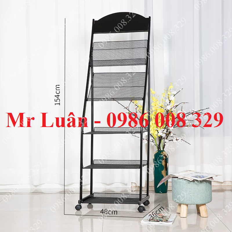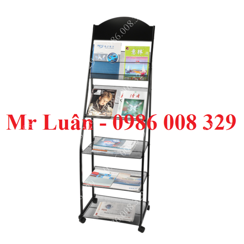 Giá để tạp chí thép sơn đen có bánh xe