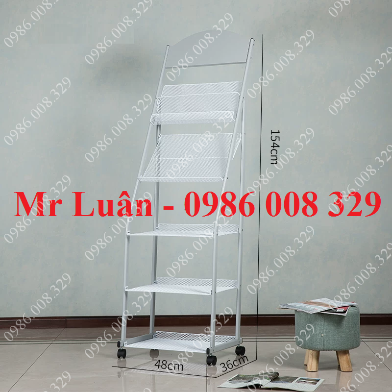 Giá để tạp chí thép sơn trắng có bánh xe