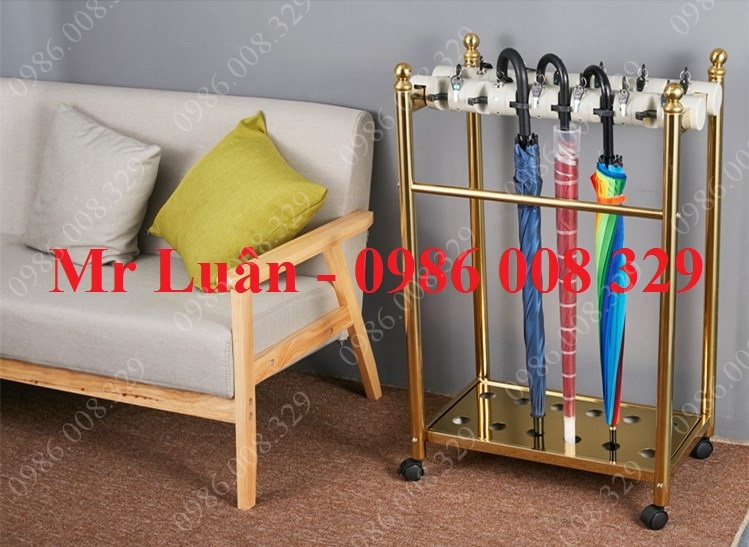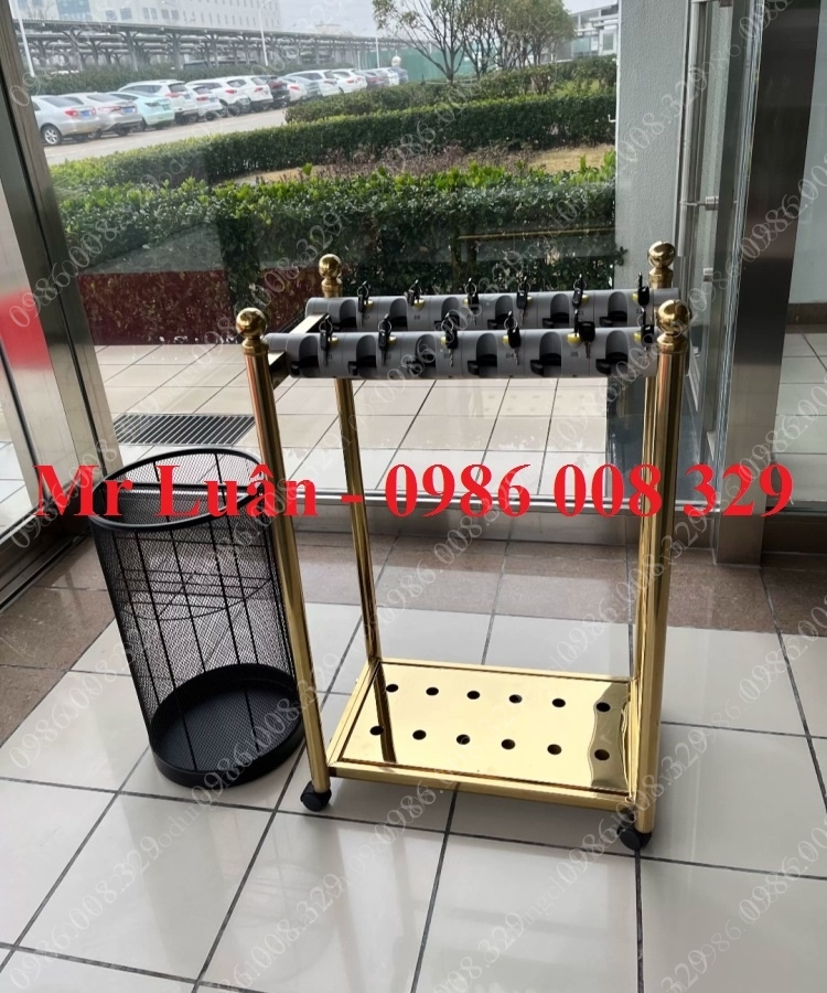 Kệ để ô dù inox mạ vàng 12 ô có khóa