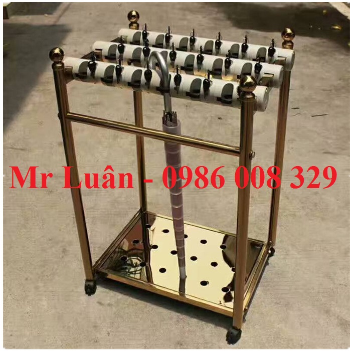 Kệ để ô dù inox vàng 18 ô có khóa