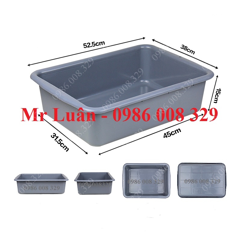 Khay nhựa dọn bàn: Thiết kế dạng thau sâu lòng, dùng để chứa bát đĩa, ly tách bẩn. Khay có kích thước tiêu chuẩn, vừa vặn với các tầng của xe đẩy inox hoặc xe nhựa thanh nhôm.