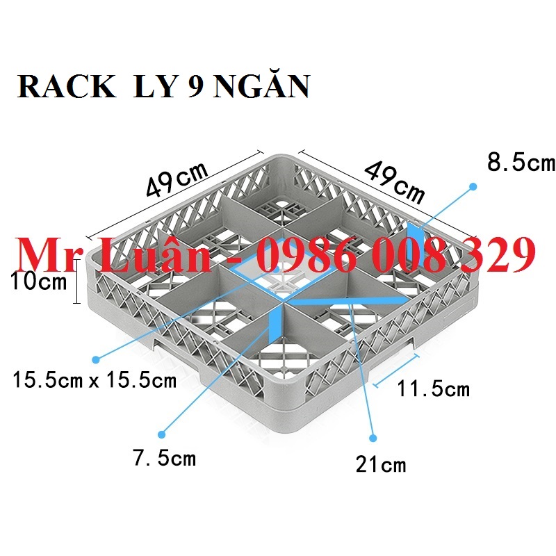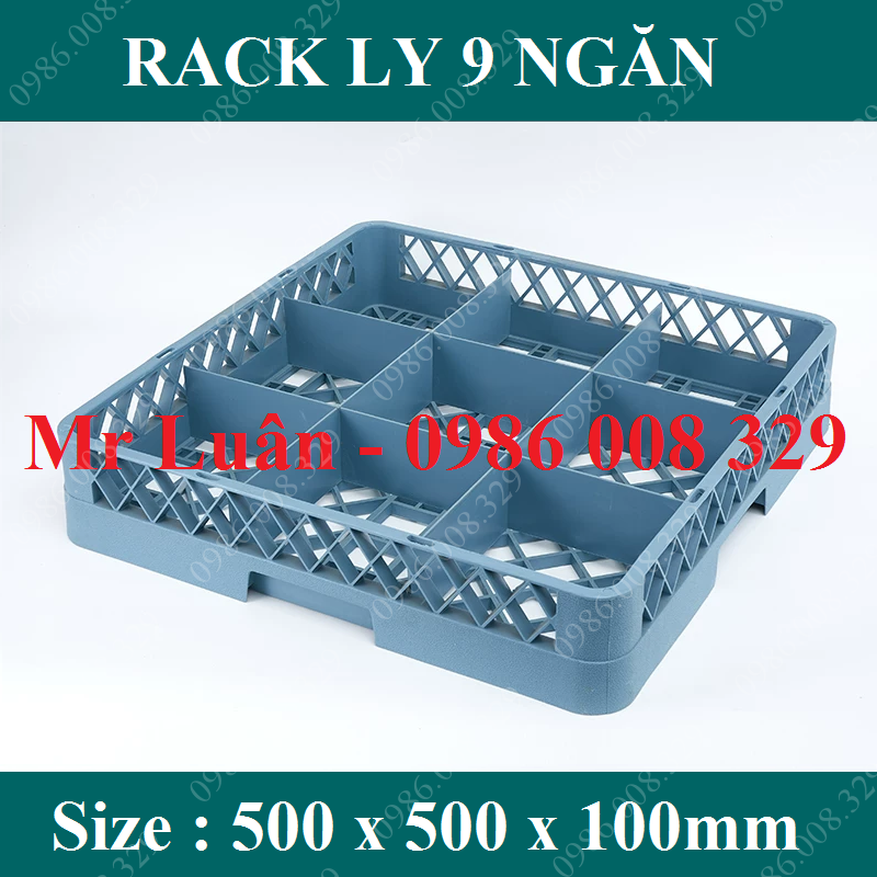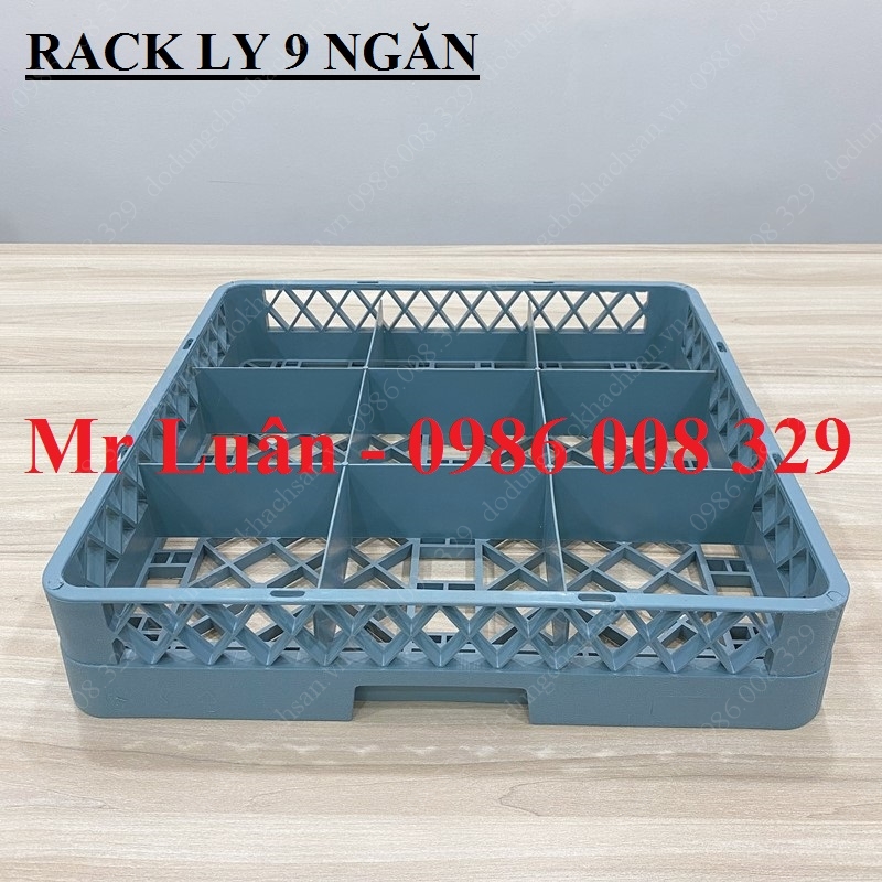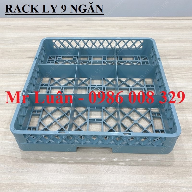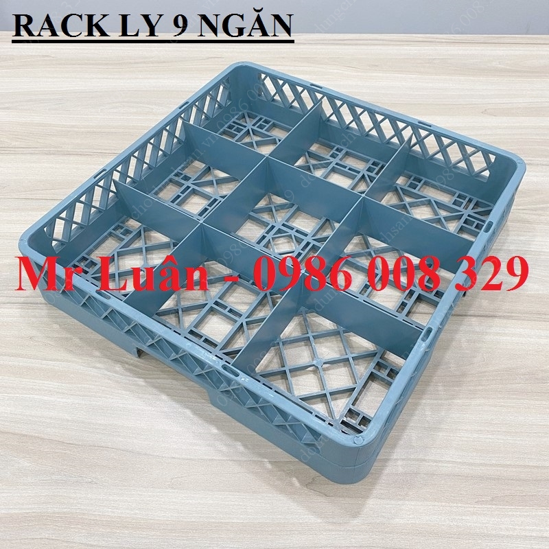 Đây là dòng rack nhựa tiêu chuẩn kích thước 500x500mm nhưng được chia thành 9 ô vuông lớn (mỗi ô thường có kích thước khoảng 150x150mm). Với số lượng ngăn ít nhưng diện tích mỗi ngăn cực rộng, sản phẩm này cho phép đặt vừa các loại ly có bầu ly lớn hoặc tay cầm cồng kềnh mà các loại rack 16 hay 25 ngăn không thể chứa vừa.