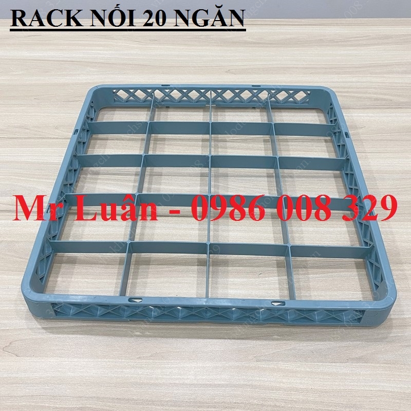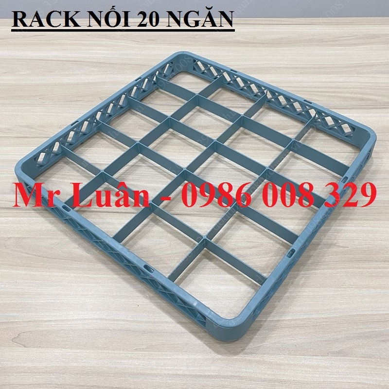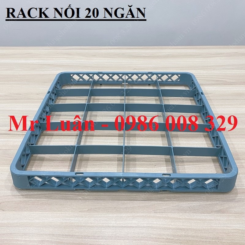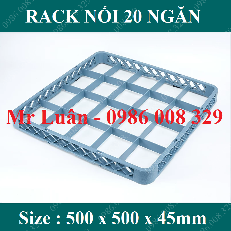 Rack nối 20 ngăn là một khung nhựa bổ trợ không có đáy, được chia thành 20 ô vuông khớp hoàn toàn với thông số của bộ rack 20 ngăn tiêu chuẩn (500x500mm). Phụ kiện này được thiết kế để lắp chồng lên phía trên thành của rack chính. Tác dụng của nó là kéo dài các vách ngăn nhựa theo chiều dọc, tạo ra một không gian sâu hơn để chứa trọn vẹn những chiếc ly có thân dài hoặc chân cao mà không làm tăng diện tích chiếm dụng bề mặt.