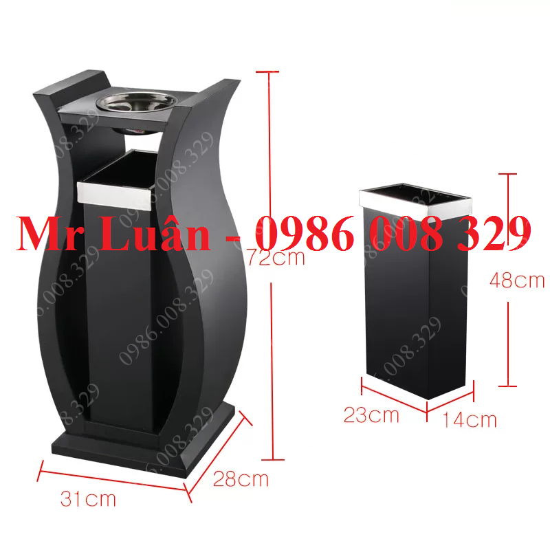 Cấu tạo: Khay gạt tàn phía trên, cửa bỏ rác bên hông, ruột chứa rác bằng tôn hoa tách rời.