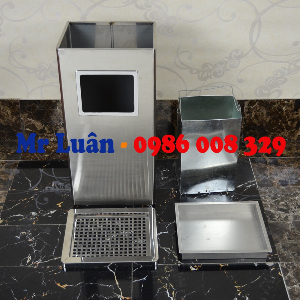 Thùng rác inox gạt tàn chữ nhật