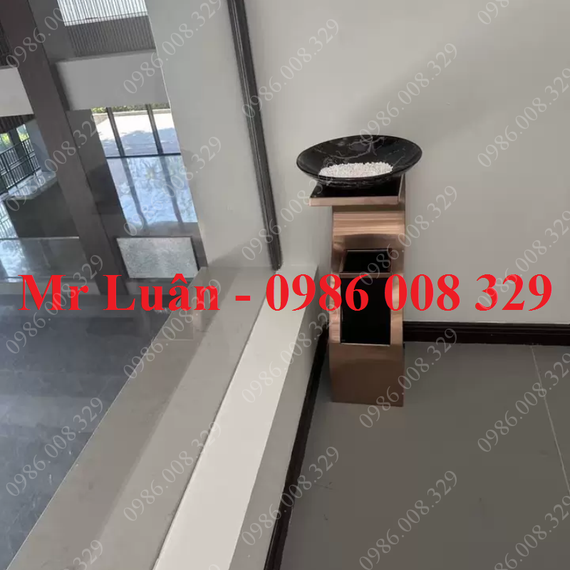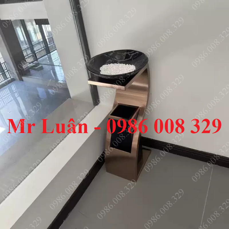 – Thùng rác để sảnh chữ Z có khay gạt tàn inox ở phía trên bằng đĩa đá, bên trong thùng đựng rác bằng tôn hoa có quai xách thuận tiện cho việc xả rác.