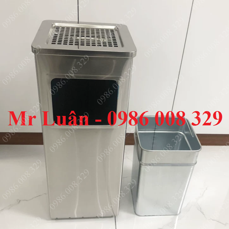 Thùng rác inox gạt tàn hình vuông