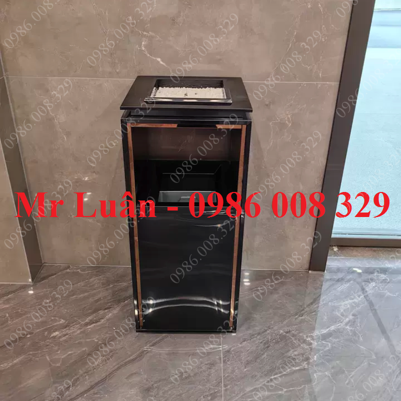 Thùng rác inox vuông đen gạt tàn hành lang
