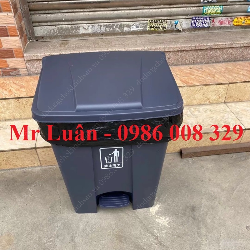 Thùng rác nhựa đạp chân 45L xám