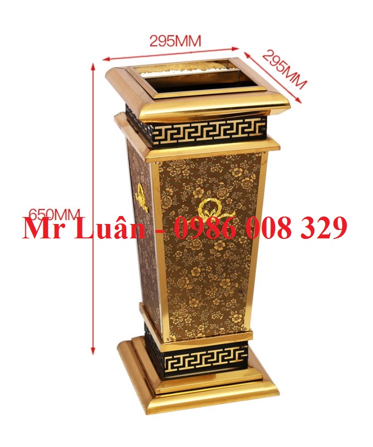 Phụ kiện đi kèm: Khay gạt tàn inox mạ vàng hoặc đá cẩm thạch phía trên; thùng tôn hoa rời bên trong.