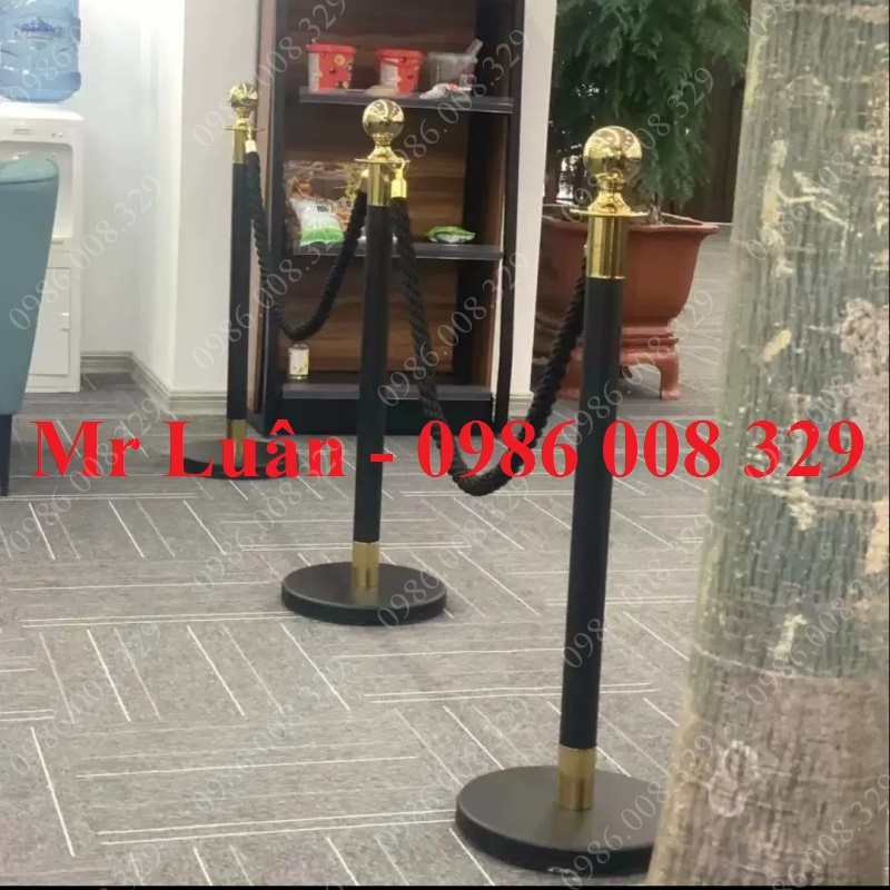Trong thiết kế sự kiện và quản lý không gian sảnh hiện đại, sự kết hợp giữa hai tông màu Đen và Vàng luôn mang lại hiệu ứng thị giác mạnh mẽ nhất. Trụ chắn thép sơn đen đầu tròn inox vàng kèm dây bện đen là minh chứng cho sự tinh tế khi kết hợp nét huyền bí của sắc đen mờ với vẻ rực rỡ của vàng gương, tạo nên một hệ thống rào chắn không chỉ để phân luồng mà còn là một tác phẩm nghệ thuật trang trí đẳng cấp.