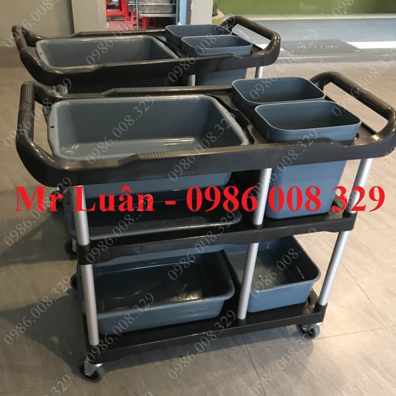 Xe đẩy thu dọn bàn ăn nhà hàng nhựa đen
