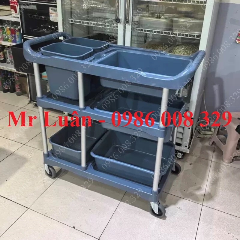 Xe đẩy thu dọn bàn ăn khách sạn nhựa xám