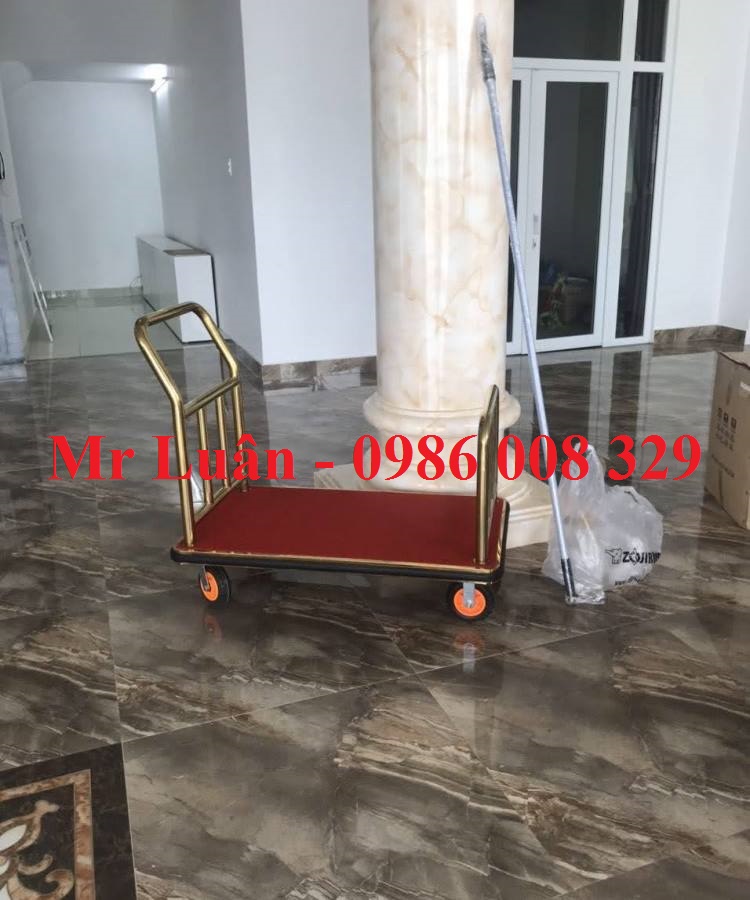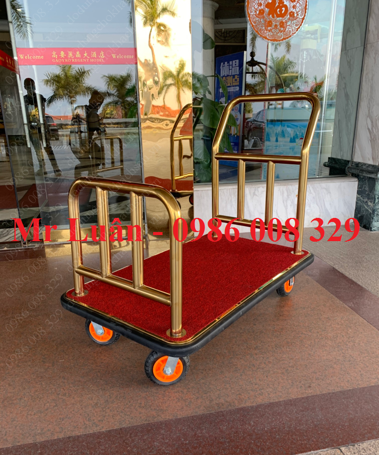 Xe đẩy hành lý khách sạn inox vàng chữ U