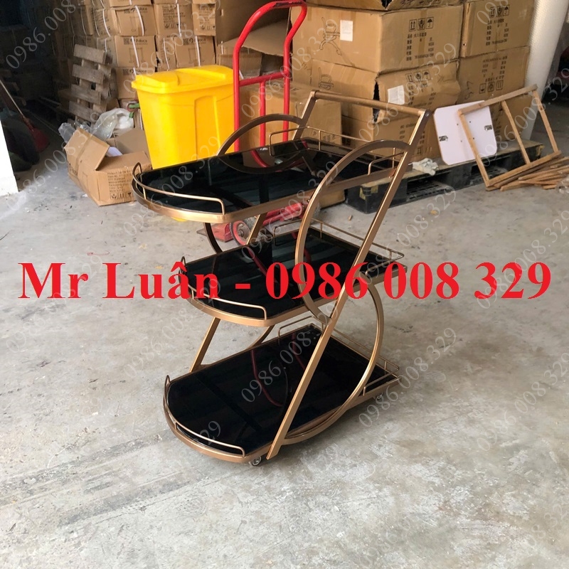Xe đẩy phục vụ rượu đồ uống inox hồng