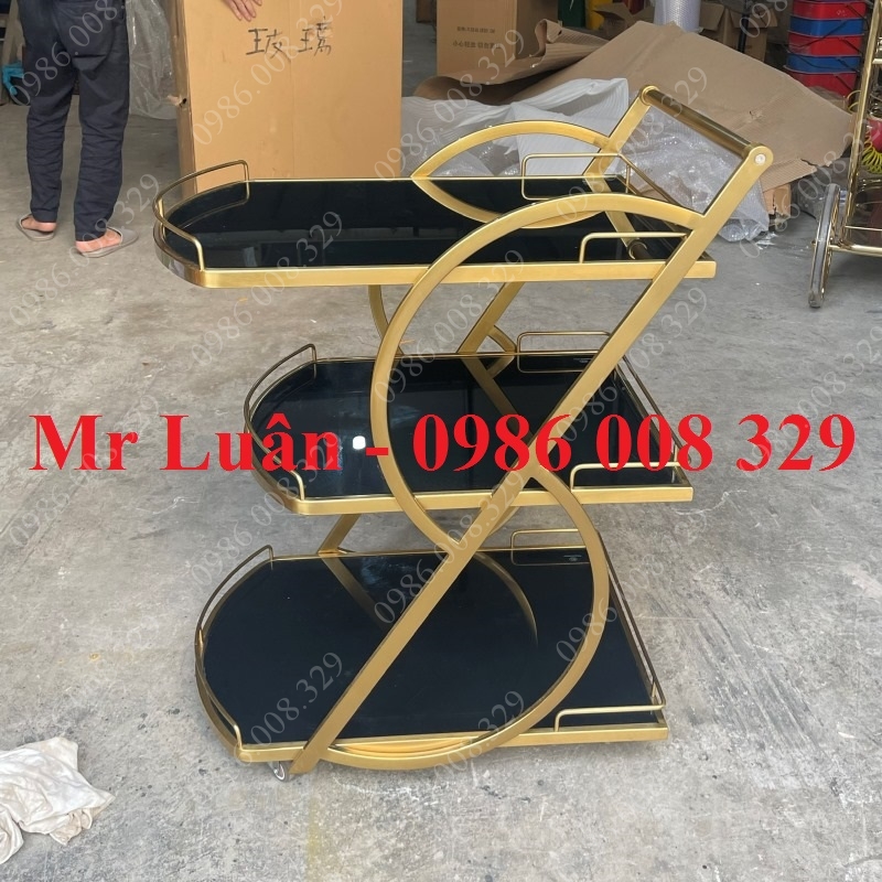 Xe đẩy phục vụ rượu đồ uống inox vàng