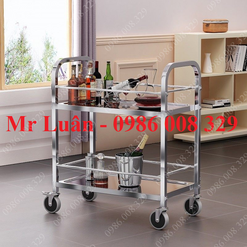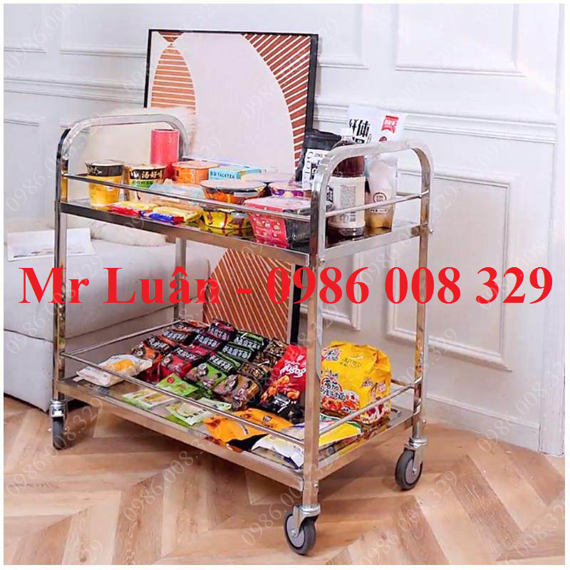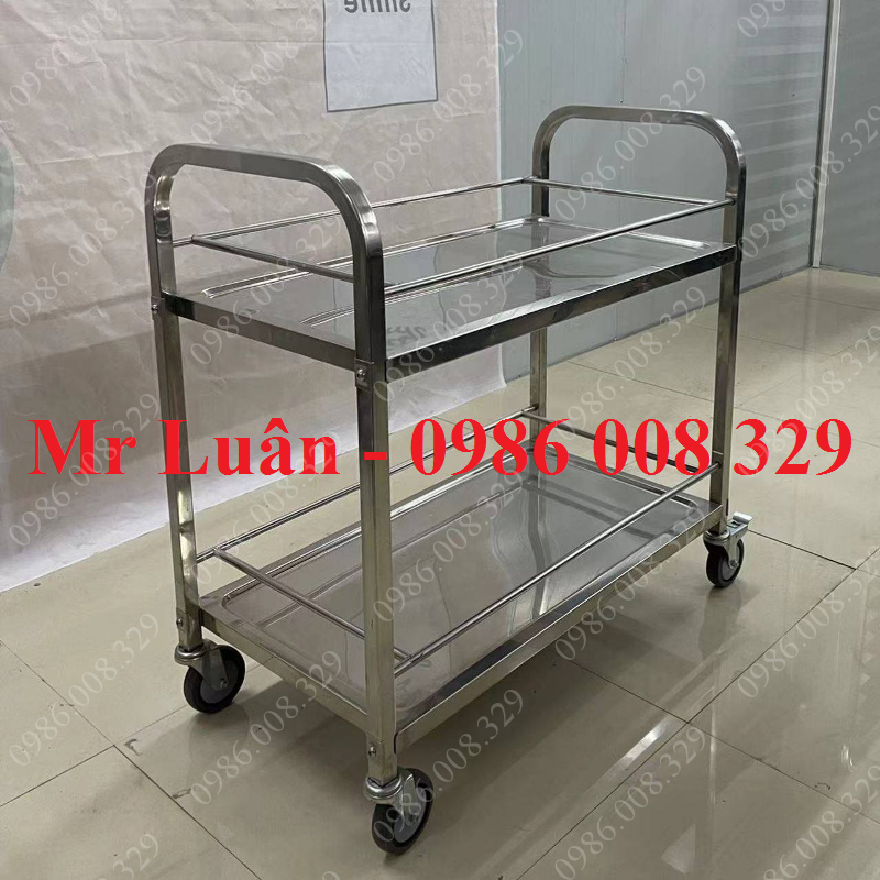 Xe đẩy đồ ăn inox 2 tầng size trung có thanh chắn