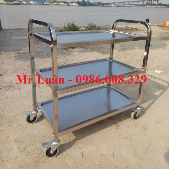 Xe đẩy thức ăn inox 3 tầng size lớn