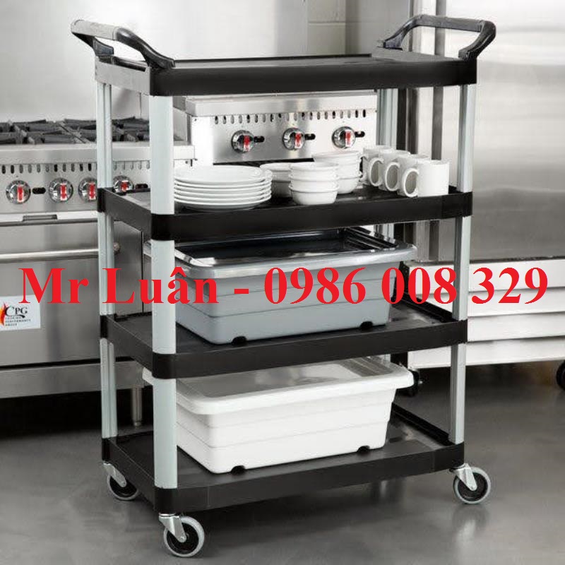 Xe đẩy thức ăn nhà hàng nhựa đen 4 tầng