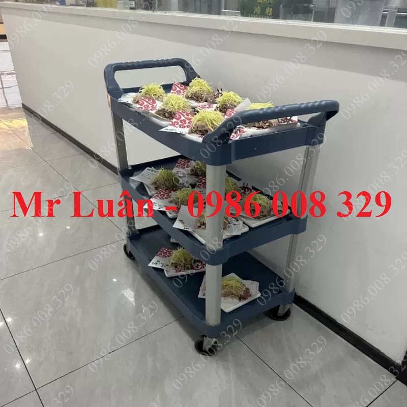 Xe đẩy nhựa xám 3 tầng thanh vuông góc