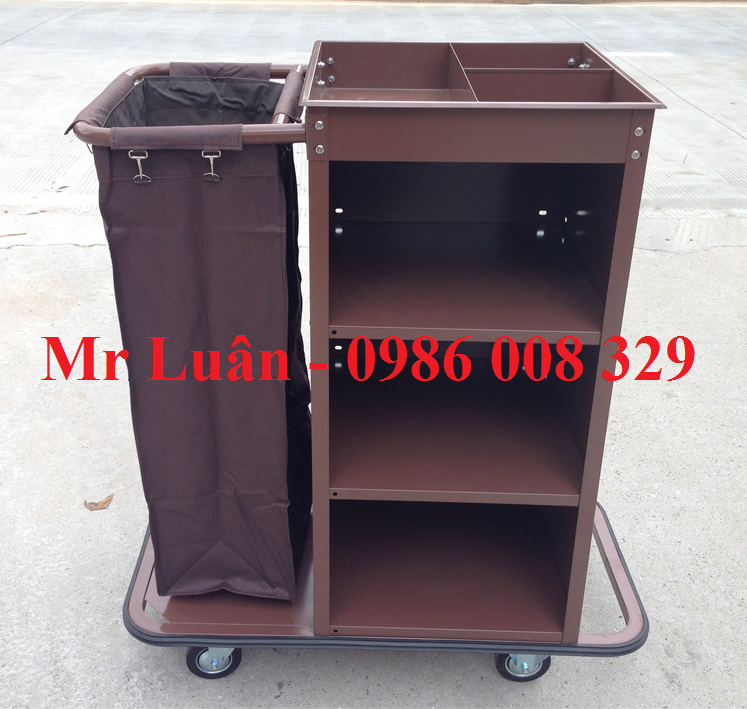Xe dọn phòng khách sạn thép sơn nâu 1 túi