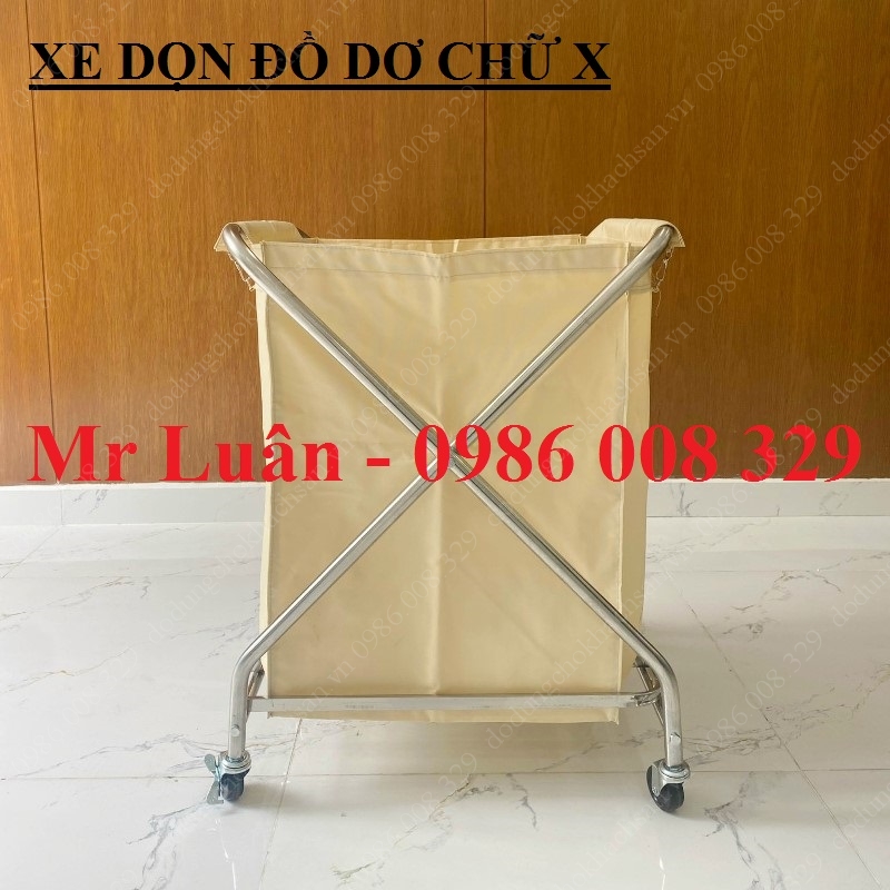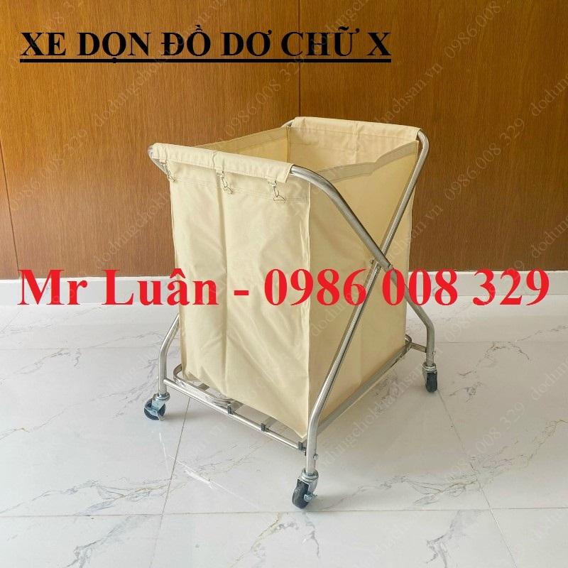 Xe dọn phòng chở đồ giặt là inox chữ X