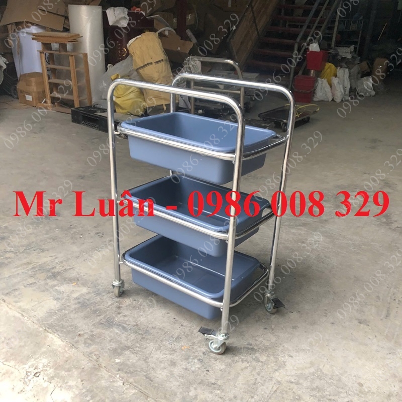 Xe thu dọn bát đĩa khung inox 3 tầng